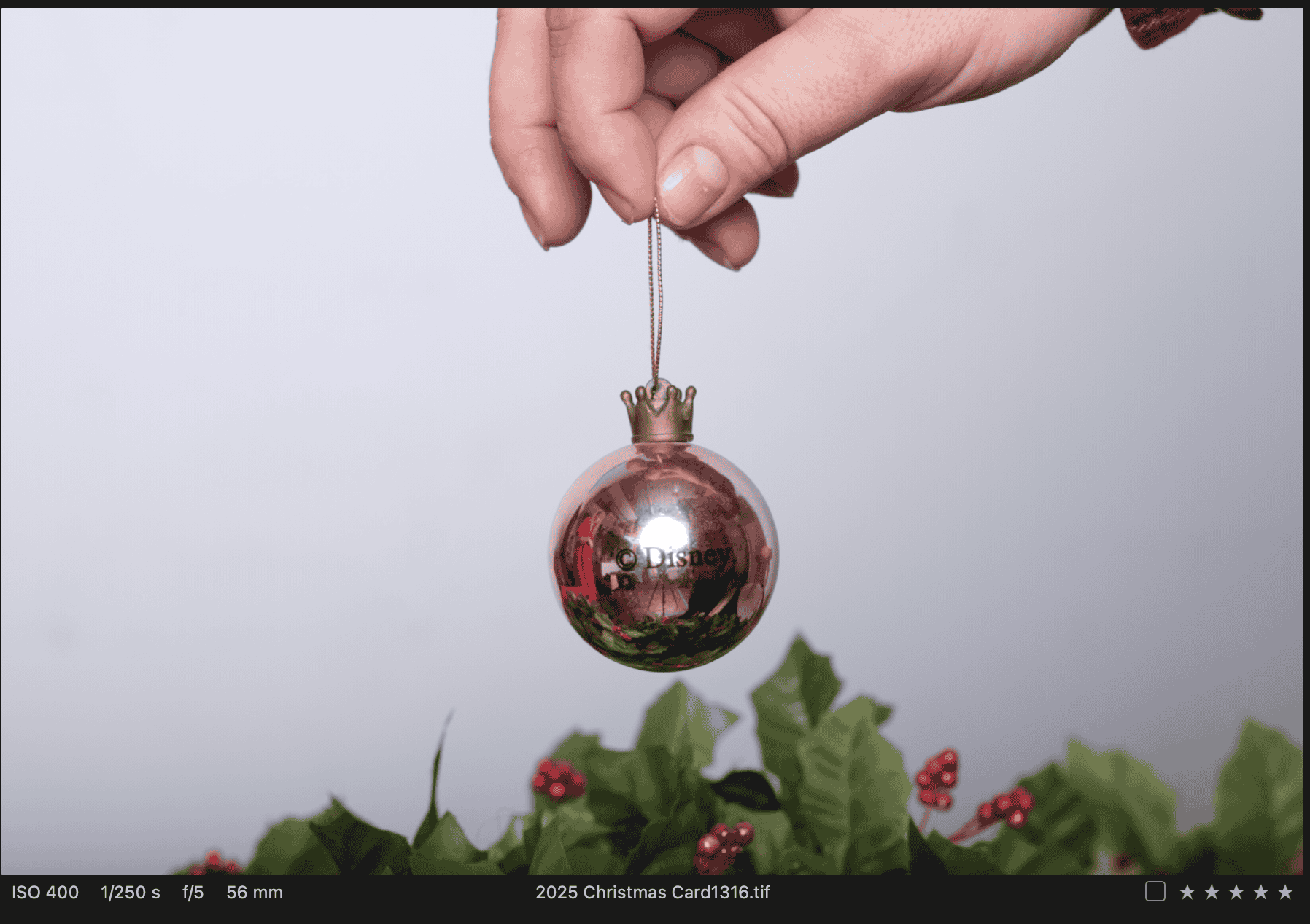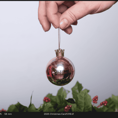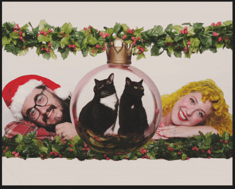 And here’s the final comp, layer by layer, in affinity! We layered the ornament reflection on top of the cats to add to the effect. Everything else was pretty straightforward. Light was a 7’ white Westcott umbrella, diffused, behind camera. Shot on my Fujifilm XT-3.