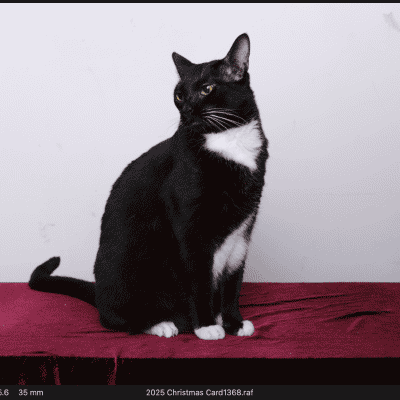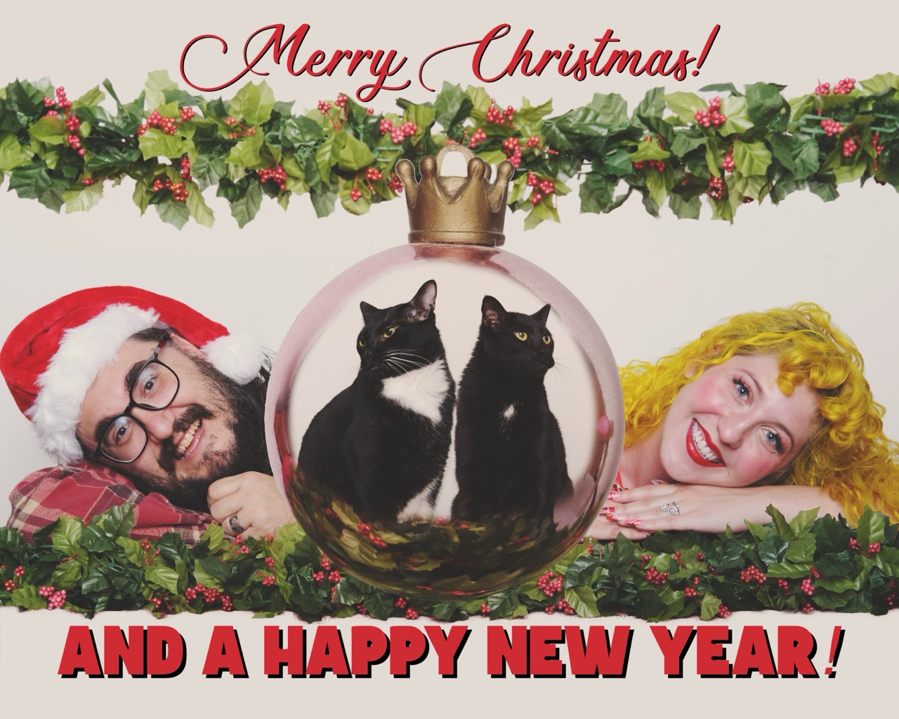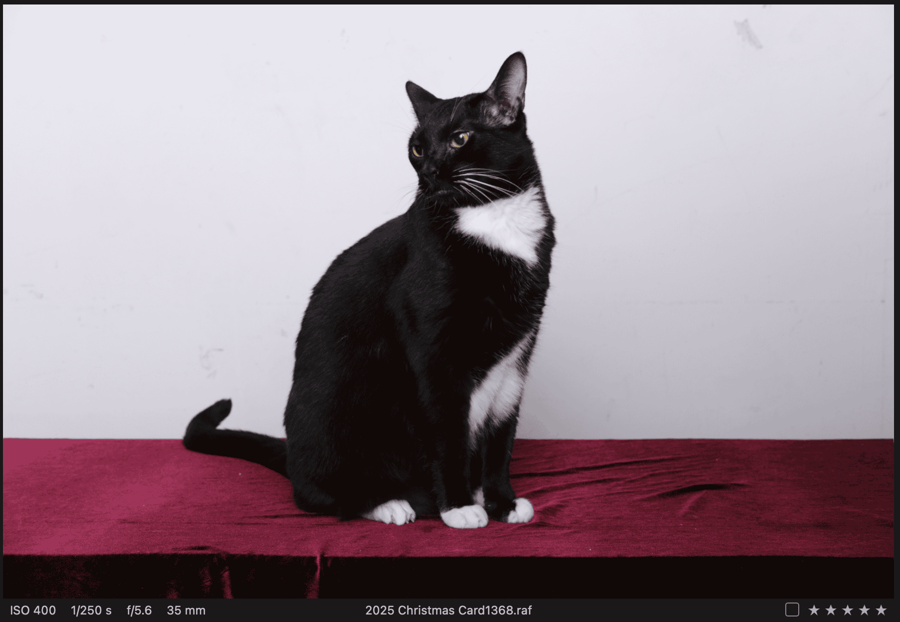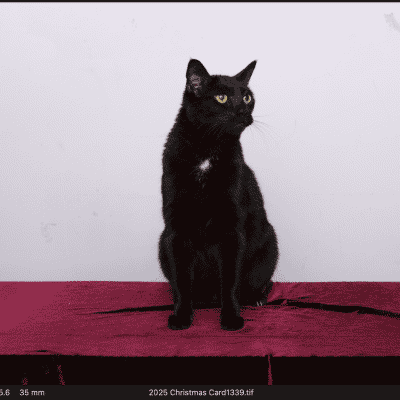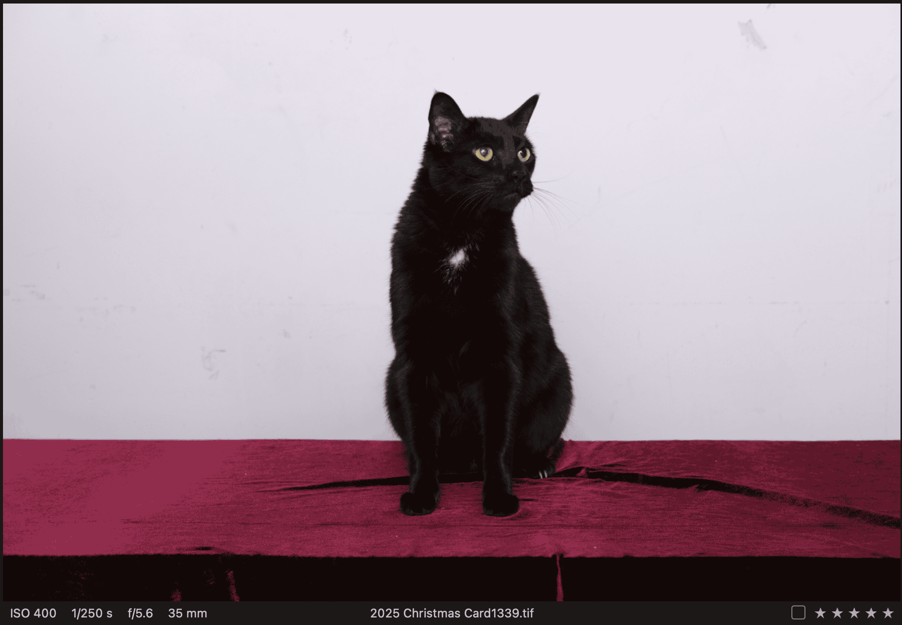 Merry Christmas from CyberBuffalo & AbraCatrena! Each year we do a Halloween and Christmas card and this year I decided to do a little breakdown on how we made it. Our cards are GENERALLY made up of multiple photos that I will comp together using Affinity Photo, this is generally because we’re only 2 people and photographing cats is hard.