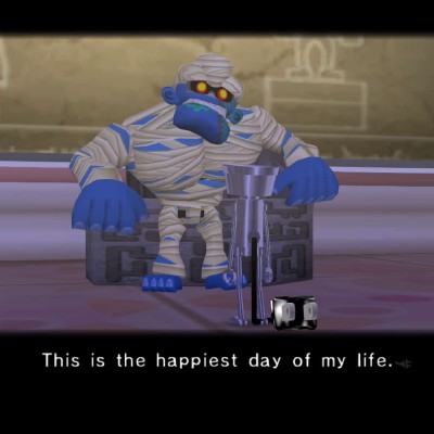 The broke dad decides its time to deploy what I can only imagine is the world’s most expensive toy, the Chibi Robo. From there you begin your tiny, housekeeping platforming adventure and honestly, it’s amazing. The hook of the game is to be helpful! You want to get trash thrown away and stains cleaned up. There are lots of odd things happening including a love-lorned dog toy and a hypermasculine Kamen Ryder replica.