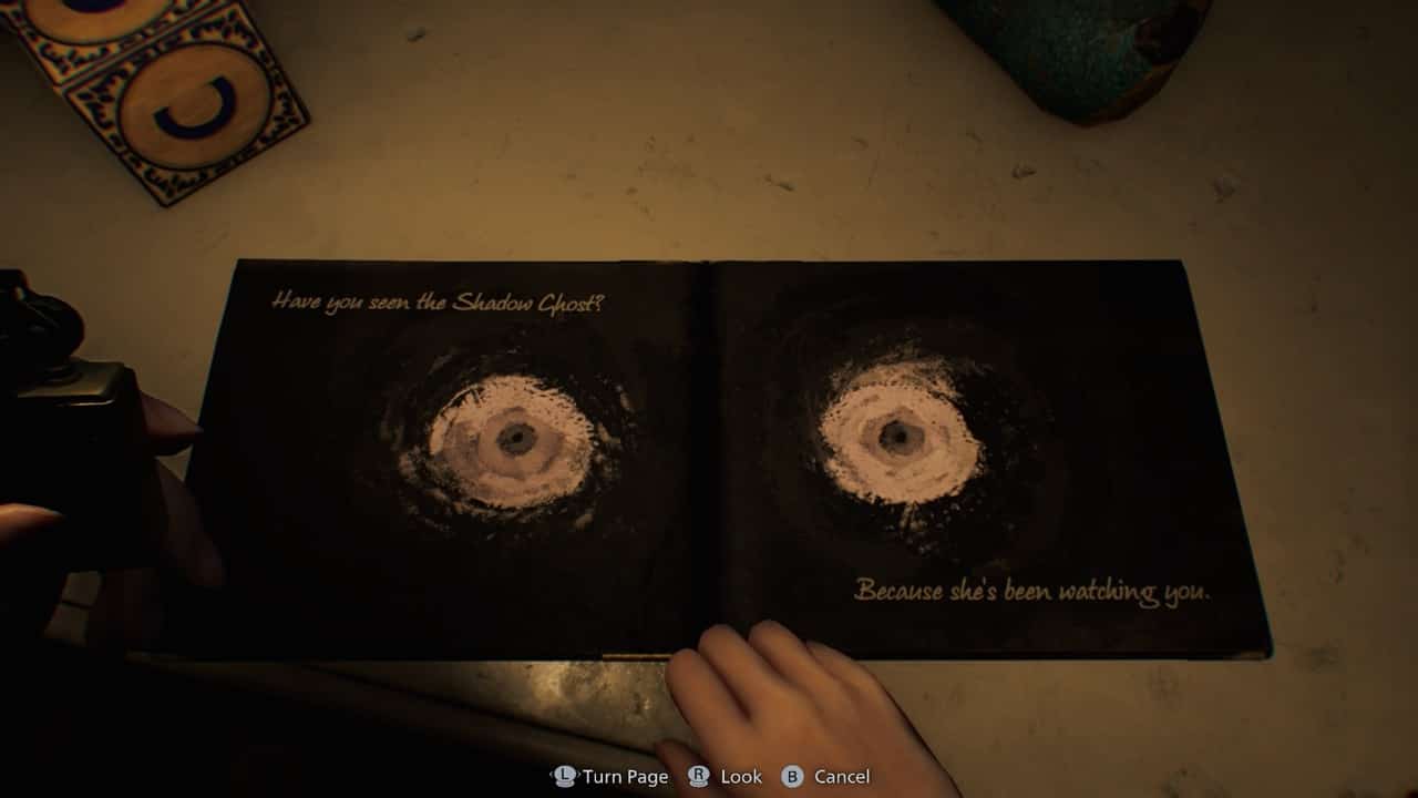 This is all to say that I am VERY much enjoying my time with the game so far. Catrena is too! We had the lights low and the sound up and there were plenty of screams and yelps coming from us. Grace’s second sections of the game finds her in a scary hospital. As we begin to explore, we move through light and dark areas. Sometimes she finds a light switch that makes the lights only flicker, sometimes she finds a lamp that will turn on. At one point she finds a hand-drawn picture book in what looks like a daycare room. The book tells the tale of the Shadow Monster and it starts to become clear that something is lurking in the dark. So far we’ve only had to run from one zombie - the police officer that helped us into the hotel in the beginning.