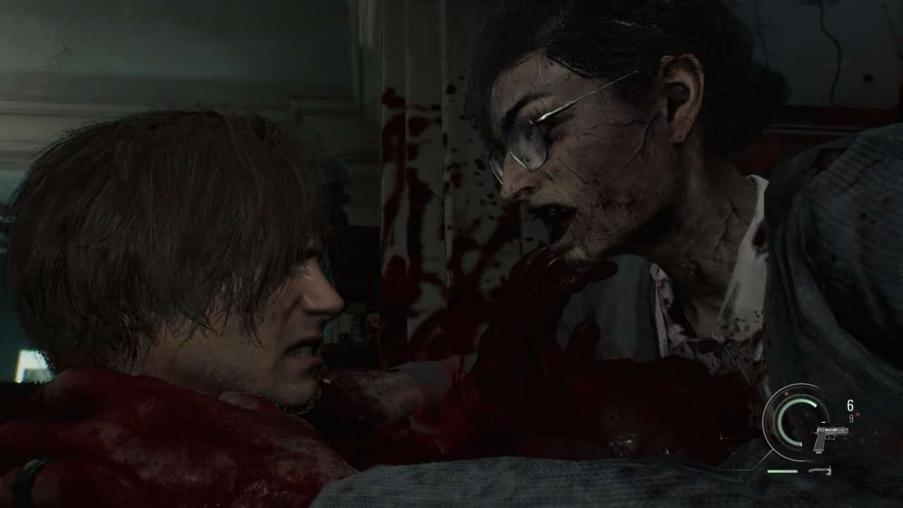 When you play as Grace, you’re afraid of the zombies. When you play as Leon, the zombies are afraid of you.