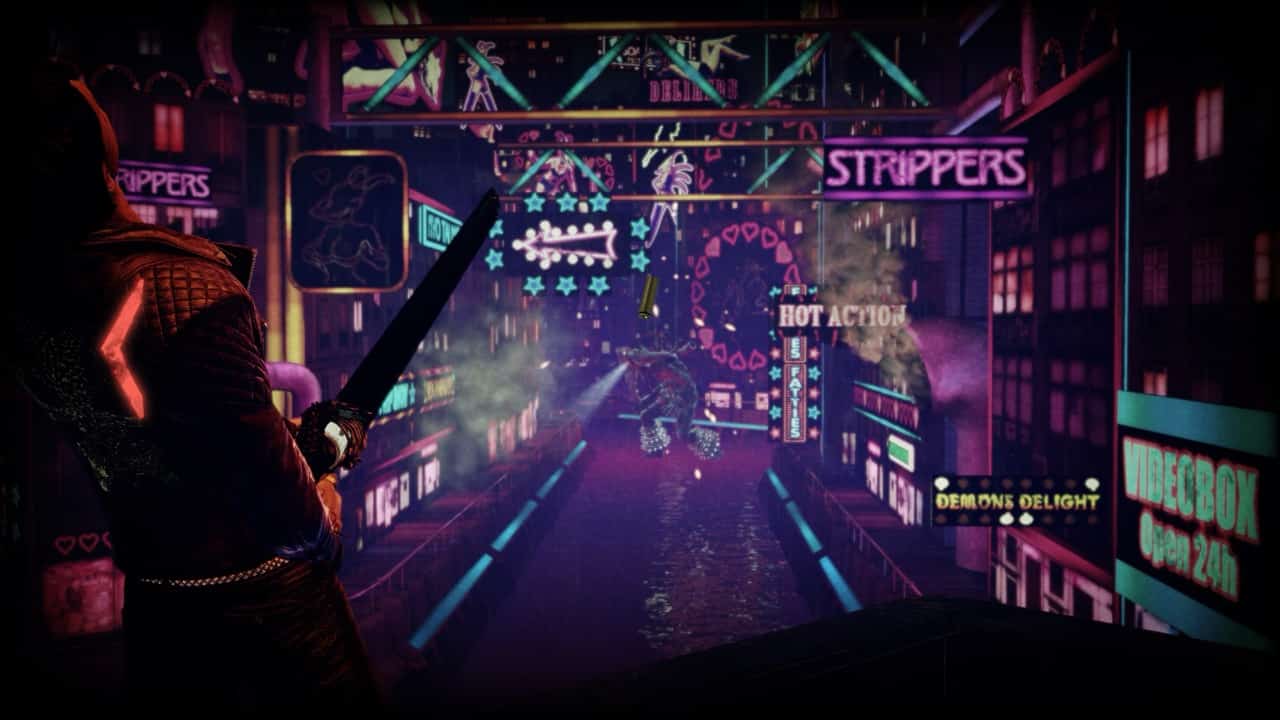 Speaking of the big boner, Here’s the elevator pitch for this section - Garcia and Johnson stage a defense against giant kaiju demons storming through a city full of erotic neon advertisements. In order to prepare, Johnson uses a payphone to call a sex hotline and gets so worked up, he turns into The Big Boner, allowing Garcia to shoot huge payloads at the offending demons. It’s incredible. The best part? It doesn’t overstay its welcome and it’s not crazy difficult. Its not easy! But its definitely passable.
